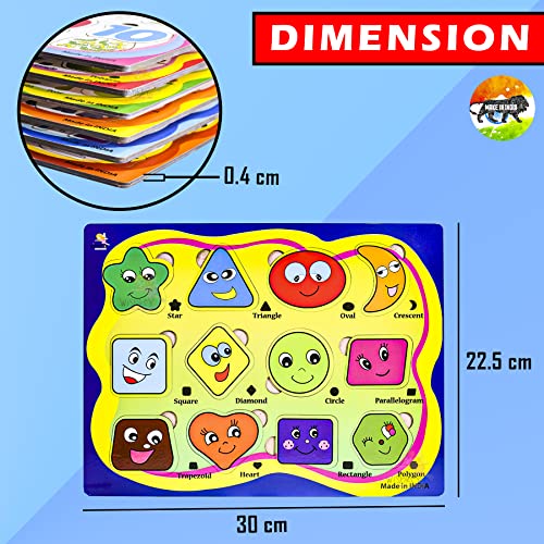 - Themed Boards: Each of the 6 colorful boards are wooden & have a different learning theme such as fruit shapes, geometric shapes, animal shapes, number shapes, vehicle shapes, and alphabet shapes block.