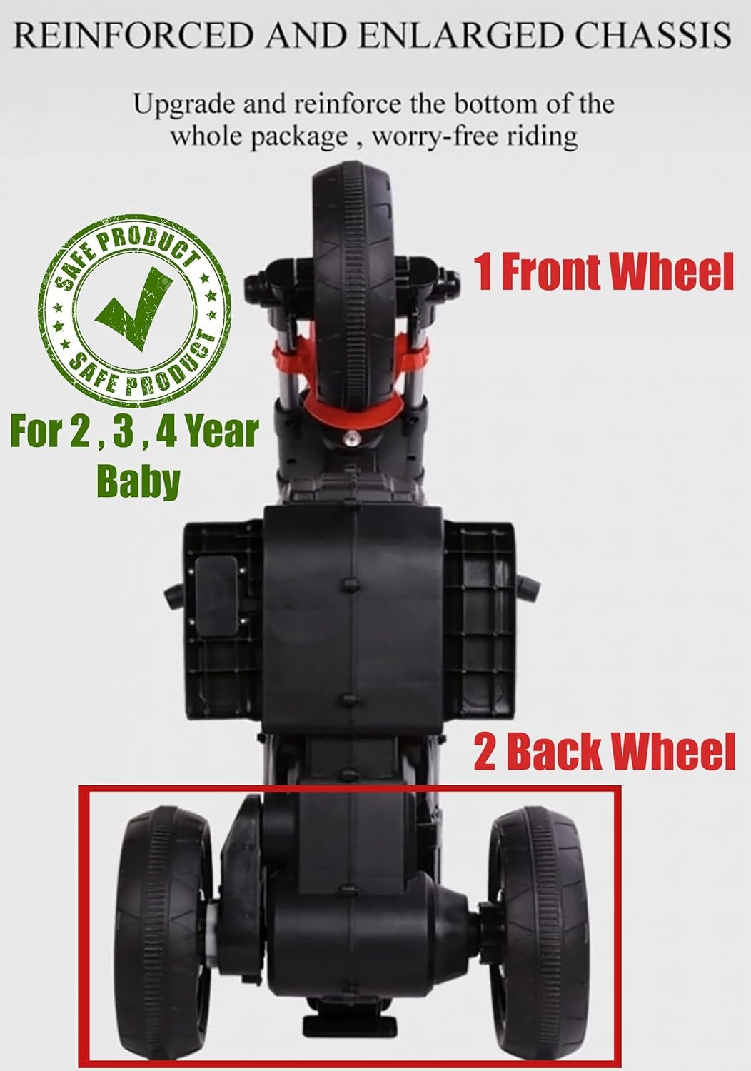 Triple-Wheel Stability: This kid\’s electric bike features three wheels for stable and safe rides on various surfaces, including asphalt, brick, or cement roads.