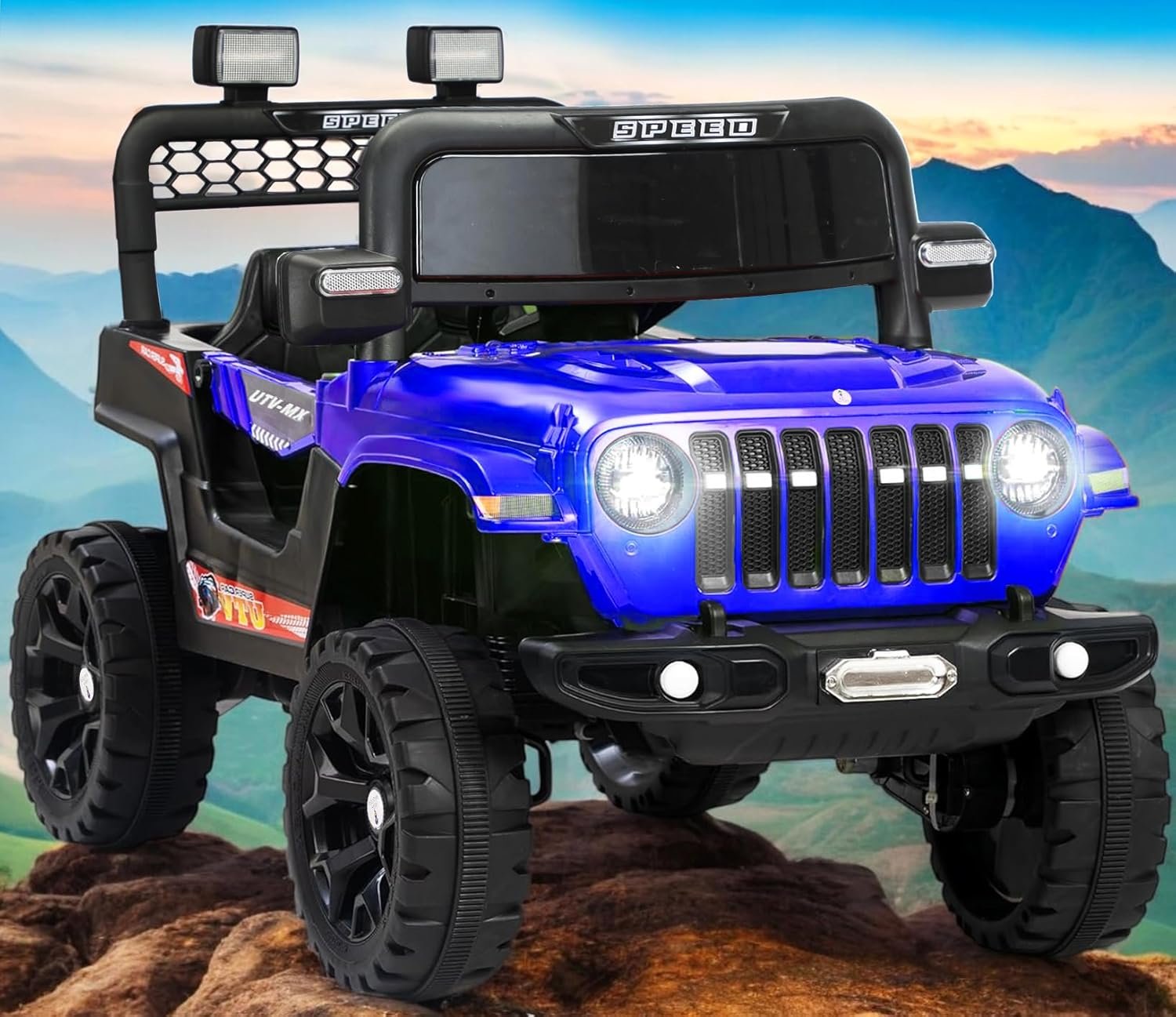 Wishmaster Driving EV Cars for 1, 2, 3, 4, 5, 6 Years | Remote + Steering + Mobile App Control | Kids Jeeps (Entery Level Jeeps [2-6 Years]- Thar, Blue)
