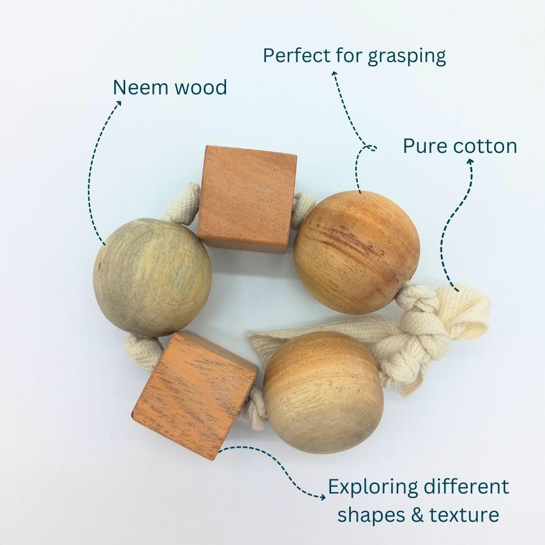 Wooden Beads & Cubes Montessori Toys | Threading Shapes for Early Education | Fine Motor Skills | Natural Wood | Non-Toxic | Brain Development Toy for 0-1 Year Kids | Handcrafted in Channapatna