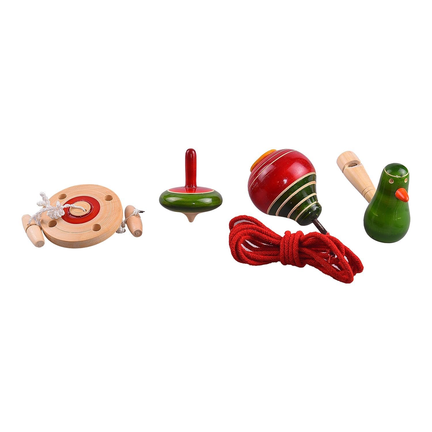 Wooden Bird Whistle Toy, Spinner & Spinning Tops for Kids (2 Year+) – Set of 4 pcs Discover Sounds