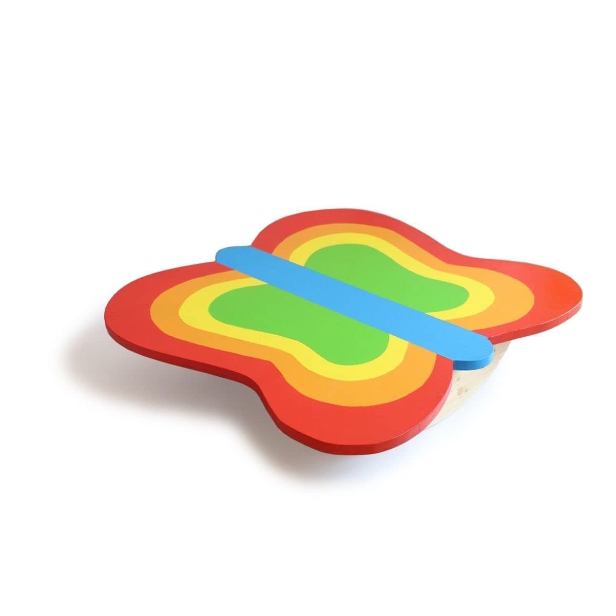 Brightly colored butterfly shaped wooden balance board for your child can be used to balance, wobble or jiggle on it and improve balance and coordination.