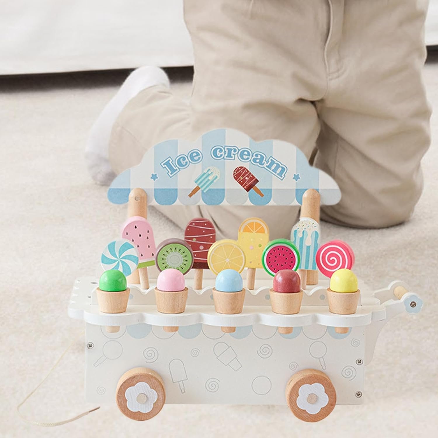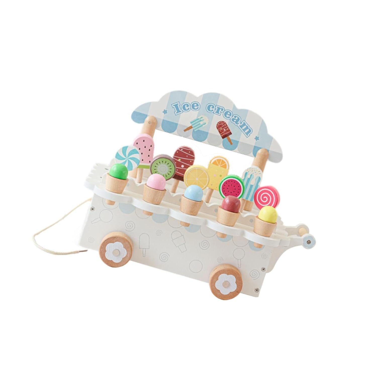 Wooden Ice Cream Toy Education Pretend Play for Kids 3-8 Year Old Boys Girls White|Toys & Hobbies | Educational | Other Educational Toys|1 Wooden Ice Cream Cart Set