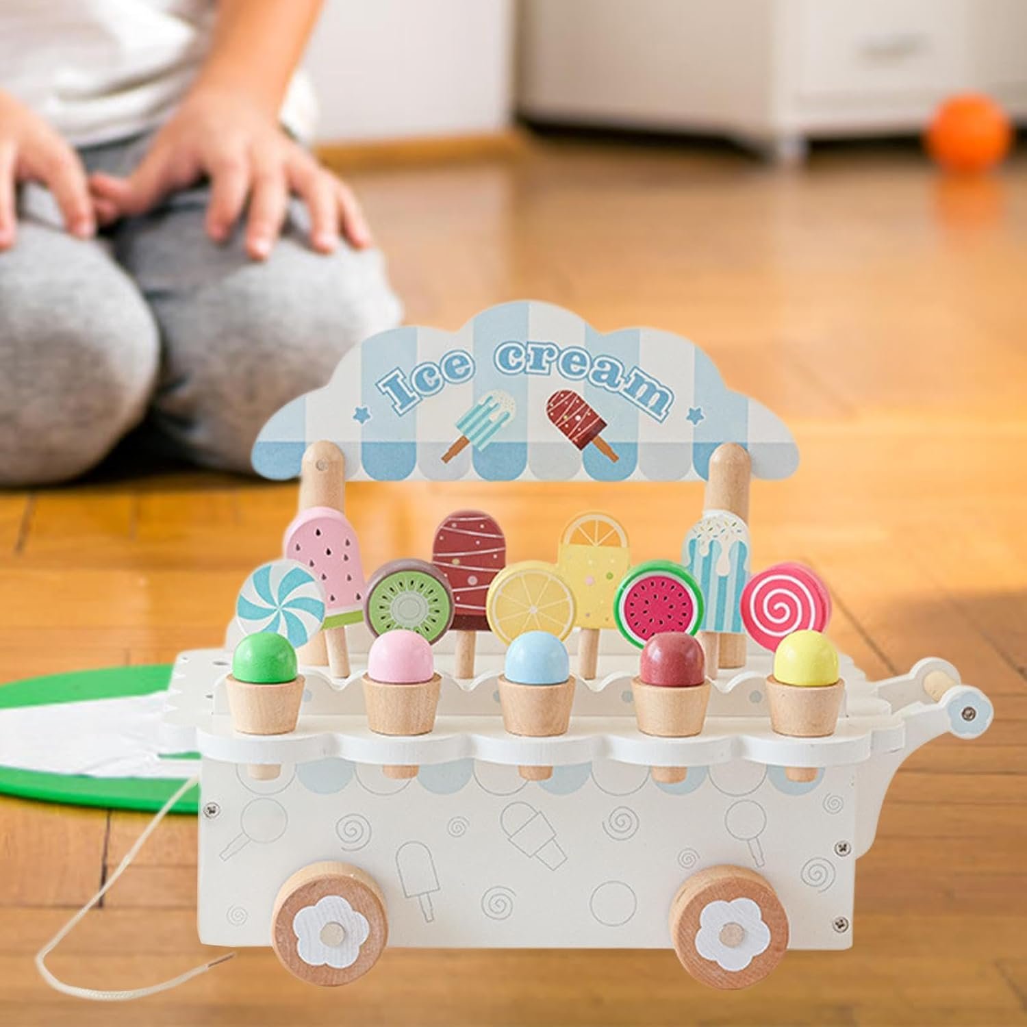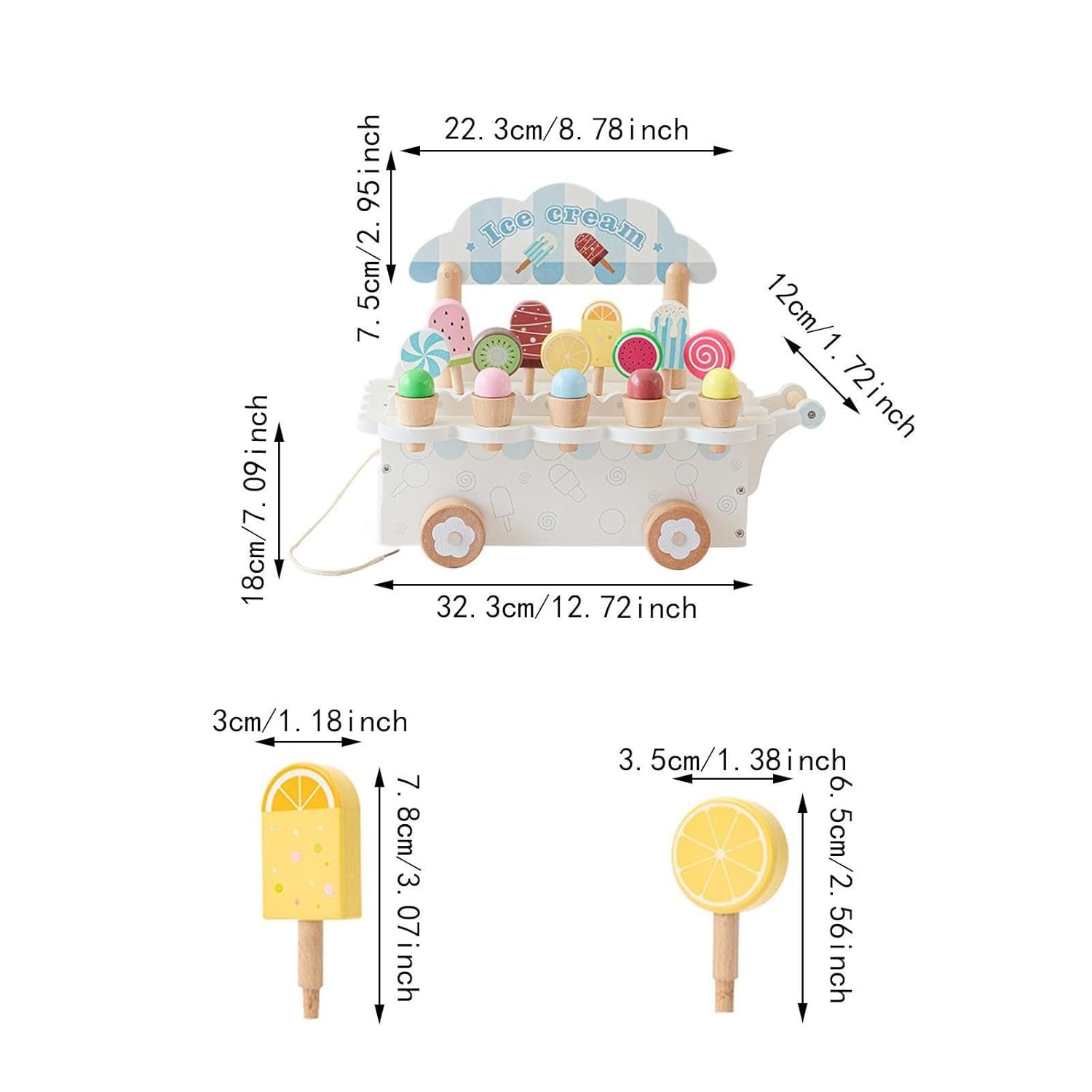 Material‘: Wooden ice cream cart set is made of wooden materials, and children can play.
