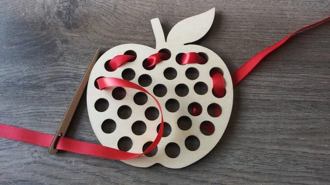 Wooden Lacing Apple Threading Toys Wood Lace Block Puzzle Shape Travel Game Toys Early Learning Fine Motor Skills Educational Gift for 2 3 4 Years Old Toddlers Baby Kids|Pack of 1 (5 in)