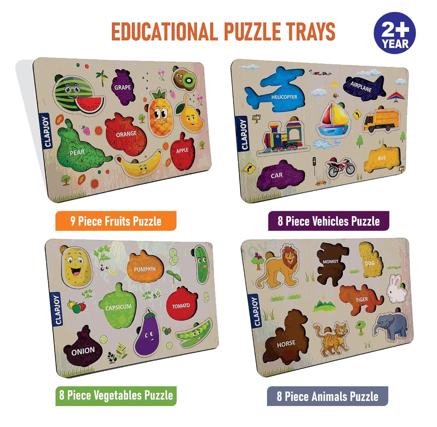 Wooden Learning Educational Board for Kids, Puzzle Toys for 2 Years Old Boys & Girls (Combo of 4)