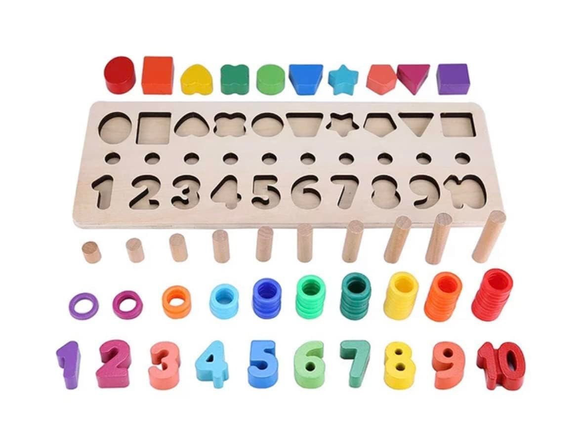 Wooden Number and Shape Puzzle Sorting Montessori Toys for Toddlers, Learning & Educational Toys for Number Counting, Game for Age 3-5 Year olds Kids
