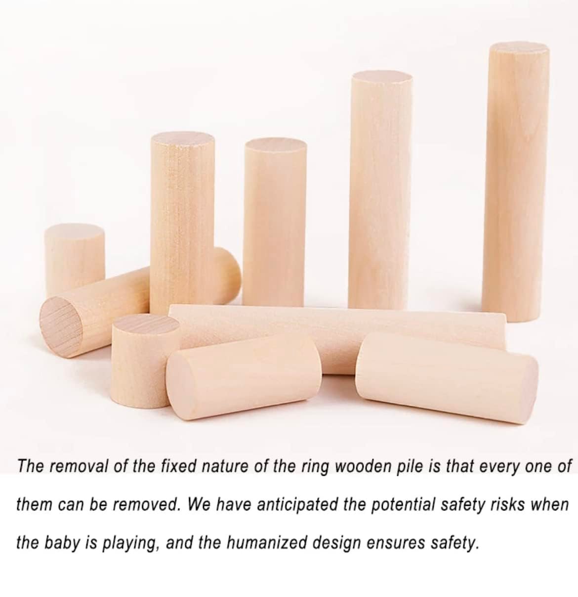 【EASY & DURABLE PACKAGE】:Comes with a sturdy wooden box, which contains 1 x wooden board; 10 x different shapes of wood blocks; 10 x small wooden stakes; 55 x circles;10 x numbers (1-10)