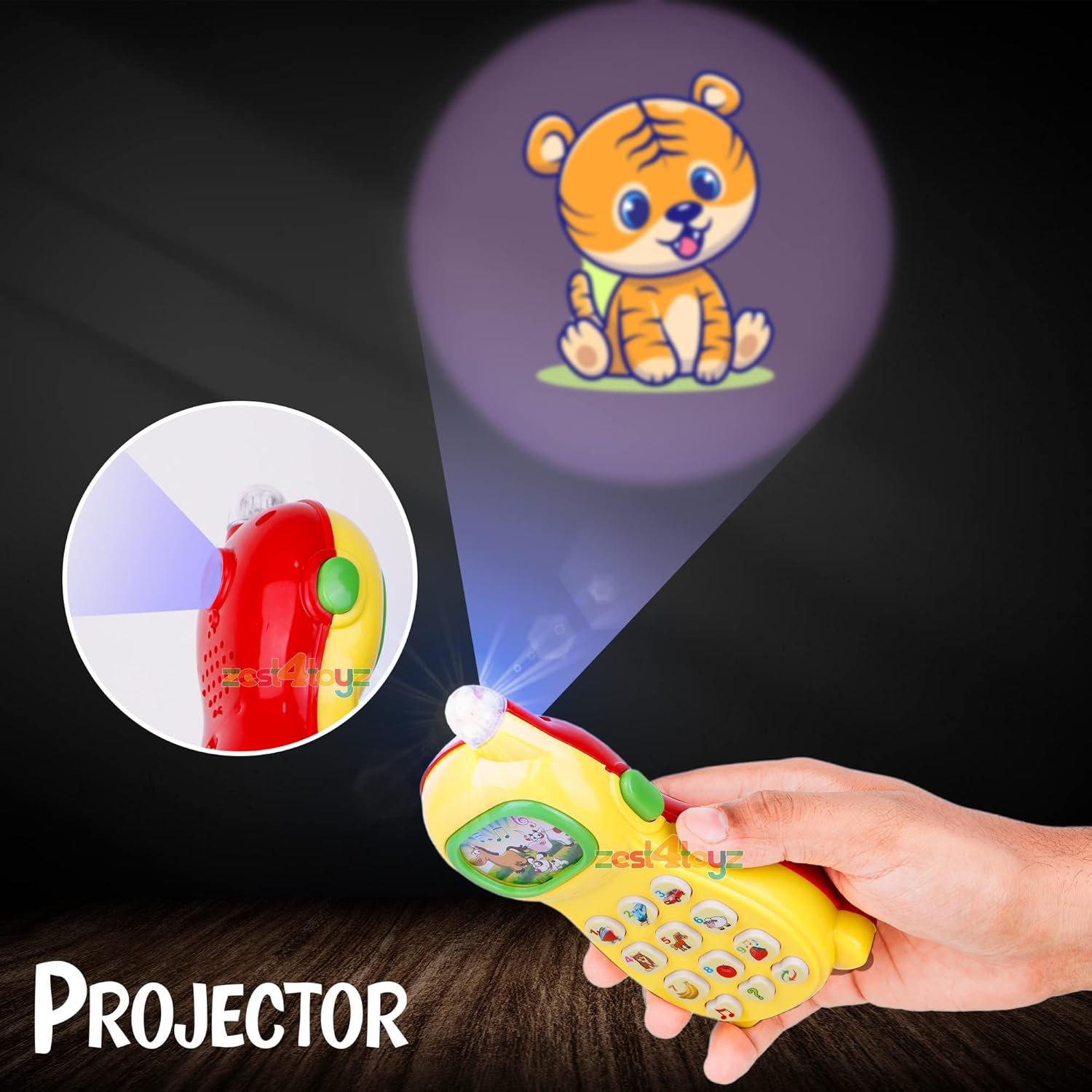 π 3D PROJECTOR WITH ANIMAL IMAGES: Watch your child\’s face light up with joy as the phone\’s projector displays cute animal images! Perfect for storytelling and imaginative play, it enhances visual stimulation and creativity.
